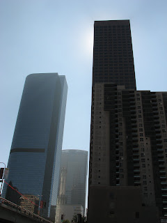 В первую очередь, Даунтаун, скайлайн которого является общепринятой ассоциацией города. У меня же есть вот такая фотография небоскребов лосанджелевского даунтауна.